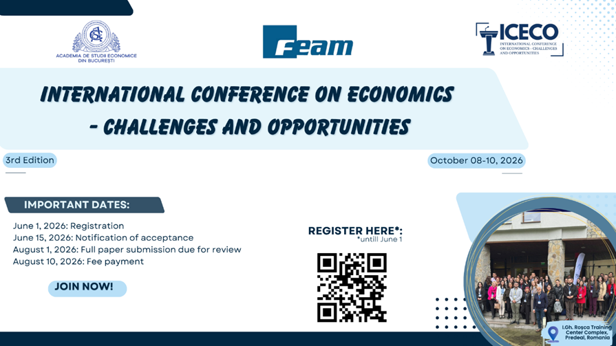 On behalf of the organizing committee, we are truly honored to invite you to take part in the 3rd edition of the International Conference on Economics – Challenges and Opportunities, organized by the doctoral schools (Accounting, Business Administration I, Business Administration II, Cybernetics and Economic Statistics, Economic Informatics, Economics I, Finance, International Business and Economics, Management, Marketing) of the Bucharest University of Economic Studies, from October 08 to 10, 2026, at the initiative of the Doctoral School Economics II.
